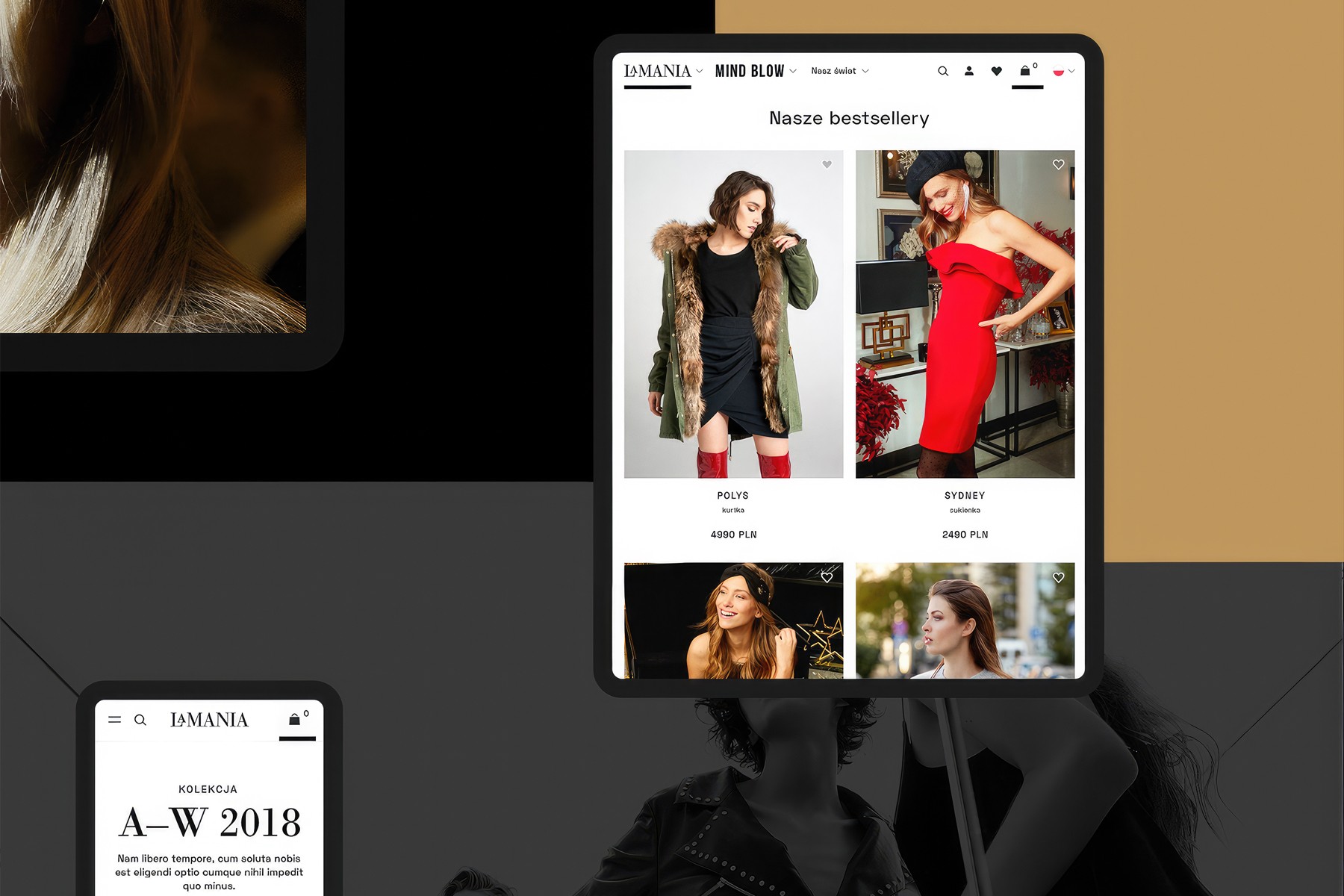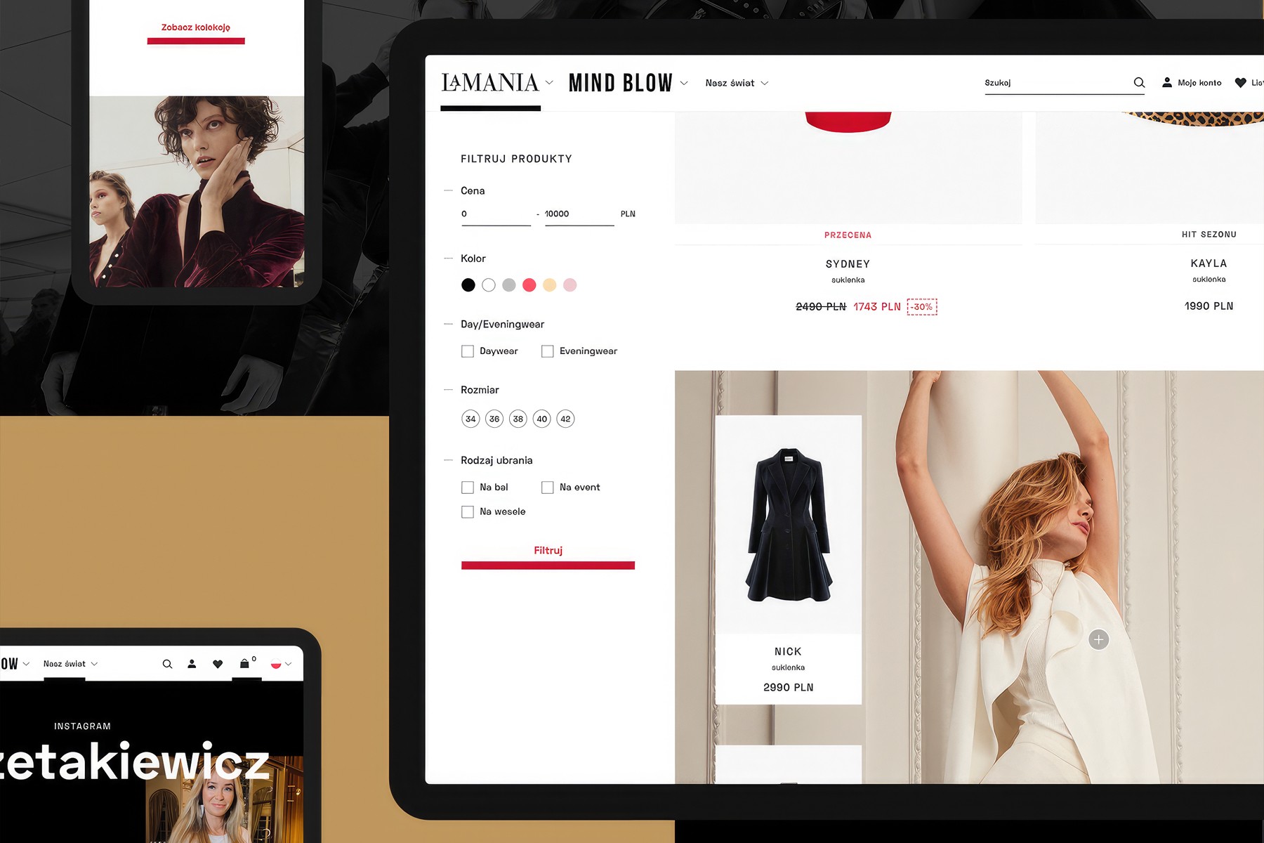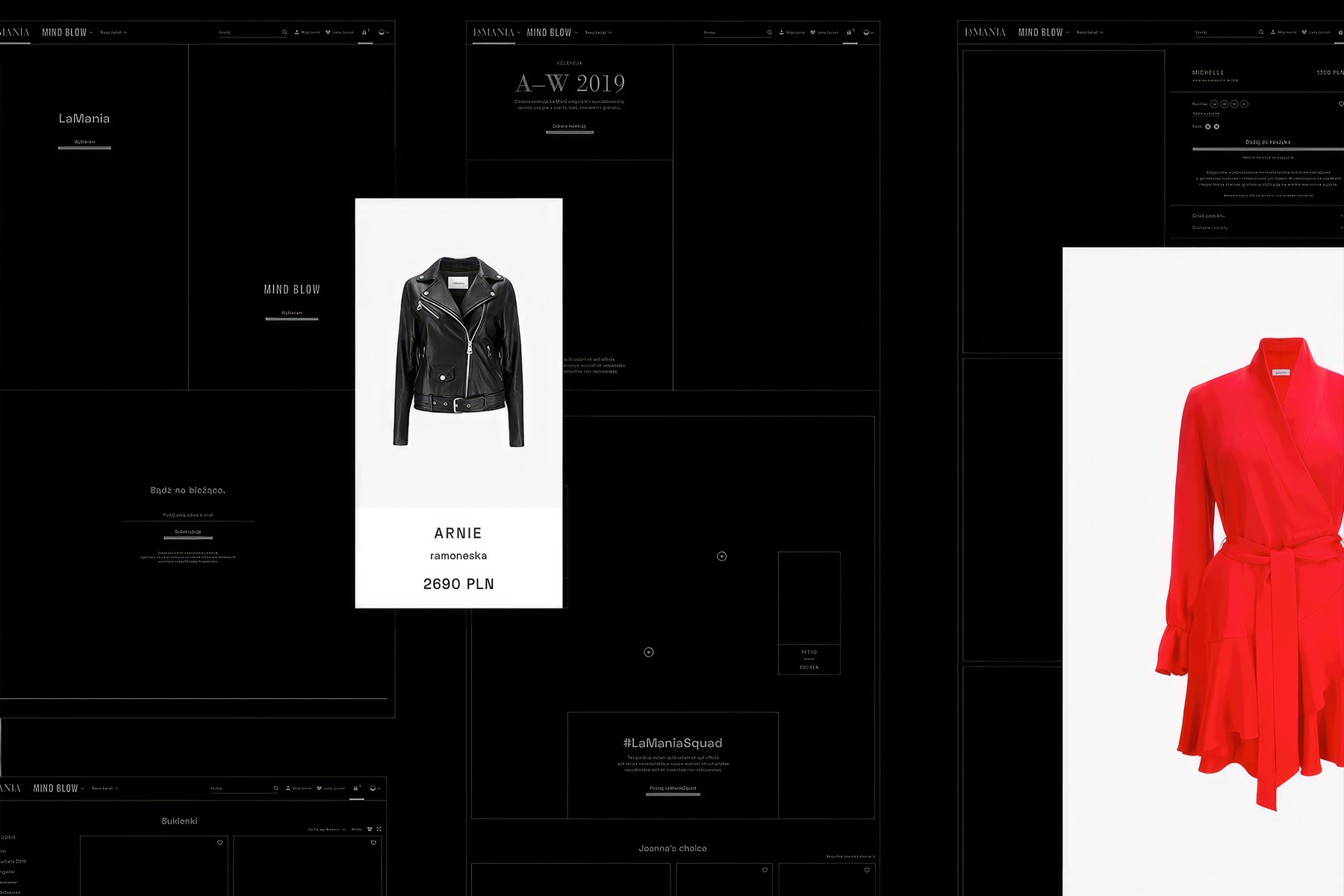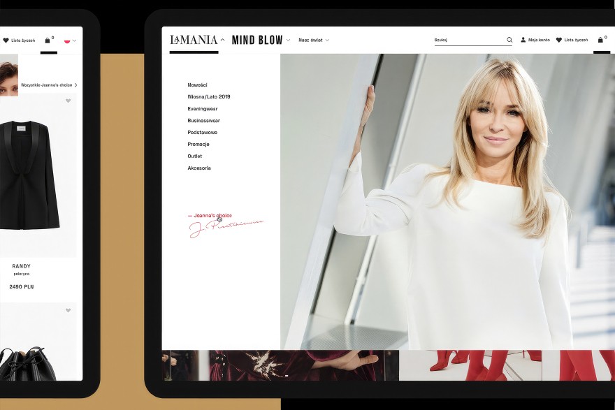 In 2018, CHALLENGE Studio had opportunity to work on refreshing online store for famous Polish fashion brand LaMania. The goal of the project was to increase conversion rate, create modern and functional store and build a sense of premium brand. The project started with discovery and research stage which was held along side with specialist from Estruktorzy. We moved to conceptual works which resulted in lo-fi and hi-fi wireframes. The new store designed by CHALLENGE was developed on Magento 2 by a group of specialists from MONOGO.