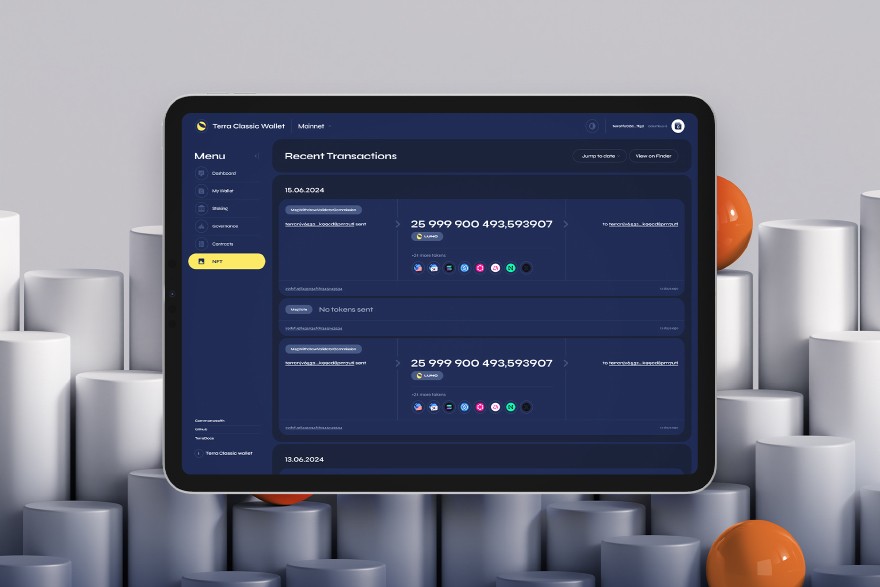 UI design of mobile and desktop friendly dedicated wallet for Terra Classic Blockchain that contributes to the revitalization of one of the largest blockchains in the history of cryptocurrencies.